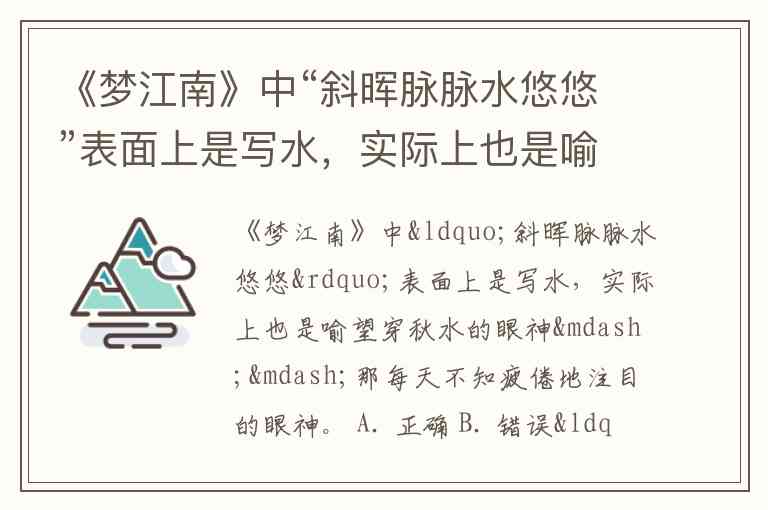 《梦江南》中“斜晖脉脉水悠悠”表面上是写水,实际上也是喻望穿秋水的眼神——那每天不知疲倦地注目的眼神。 A. 正确 B. 错误