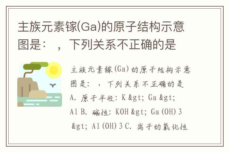 同周期元素从左到右原子半径逐渐减小,同主族元素从上到下原子半径逐渐增大。K位于第四周期ⅠA族,Ga位于第四周期ⅢA族,Al位于第三周期ⅢA族。因此,K的原子半径大于Ga(同周期左→右减小),Ga的原子半径大于Al(同主族上→下增大),顺序 K>Ga>Al 正确。