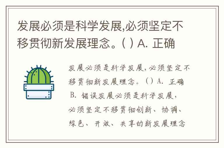 发展必须是科学发展,必须坚定不移贯彻新发展理念。( ) A. 正确 B. 错误