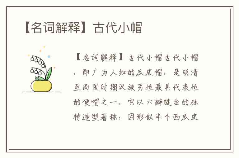 【名词解释】古代小帽