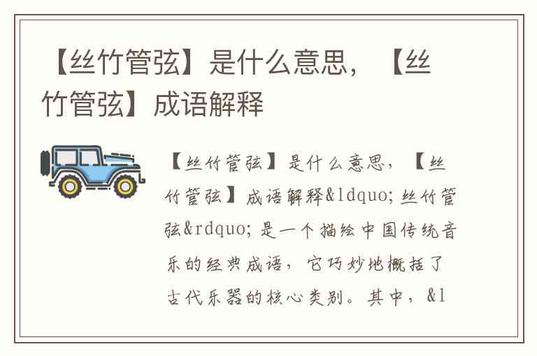 “丝竹管弦”是一个描绘中国传统音乐的经典成语,它巧妙地概括了古代乐器的核心类别。其中,“丝”特指以蚕丝为弦的乐器,如琴、瑟、琵琶等弦乐器;“竹”则代表用竹子制成的管乐器,像箫、笛、笙这类;而“管”和“弦”是对前两者的补充,进一步涵盖了各类吹奏与弹拨乐器。简单来说,这个成语既是琴瑟箫笛等乐器的总称,也常用来泛指音乐本身,就像我们今天说“聆听丝竹管弦”,其实就是在说欣赏音乐。