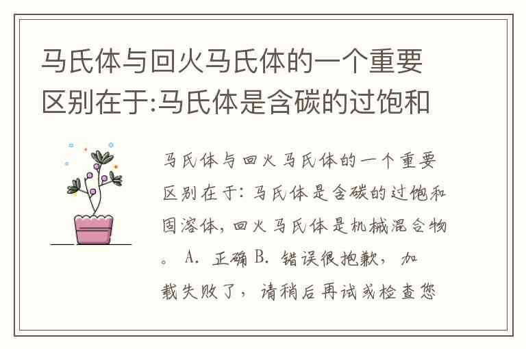 马氏体与回火马氏体的一个重要区别在于:马氏体是含碳的过饱和固溶体,回火马氏体是机械混合物。 A. 正确 B. 错误
