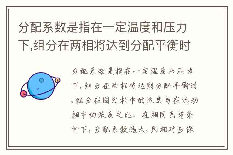 分配系数(K)定义为在一定温度和压力下,组分在固定相和流动相达到分配平衡时的浓度比值(K=固定相浓度/流动相浓度)。根据色谱理论,分配系数直接决定组分在色谱柱中的保留行为:K值越大,说明组分与固定相的相互作用越强,在固定相中滞留时间越长,从而导致保留值(如保留时间t₀、保留体积V₀)增加。因此,题目中的表述完全符合色谱分配定律的基本原理。