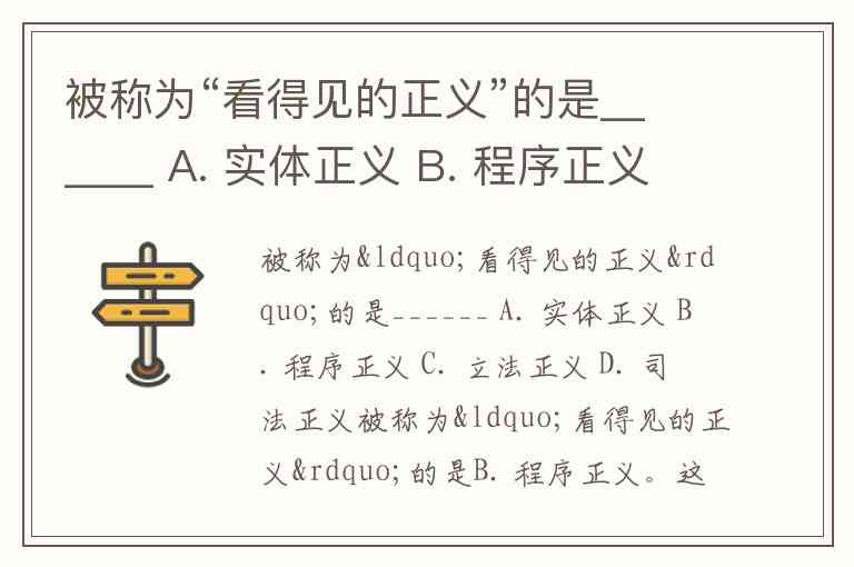 被称为“看得见的正义”的是______ A. 实体正义 B. 程序正义 C. 立法正义 D. 司法正义