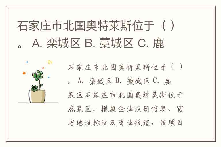 石家庄市北国奥特莱斯位于( )。 A. 栾城区 B. 藁城区 C. 鹿泉区