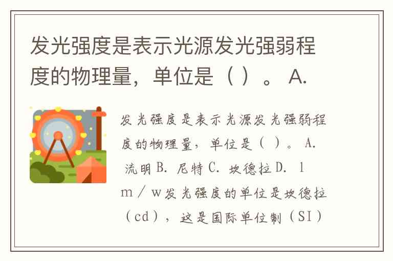 发光强度是表示光源发光强弱程度的物理量,单位是( )。 A. 流明 B. 尼特 C. 坎德拉 D. lm/w