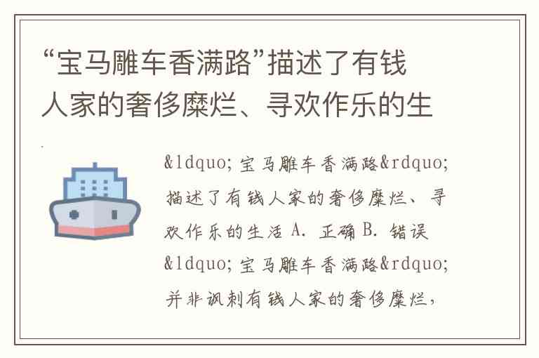 “宝马雕车香满路”描述了有钱人家的奢侈糜烂、寻欢作乐的生活 A. 正确 B. 错误