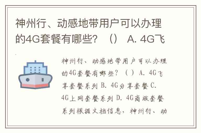 神州行、动感地带用户可以办理的4G套餐有哪些?() A. 4G飞享套餐系列 B. 4G分享套餐 C. 4G上网套餐系列 D. 4G商旅套餐系列