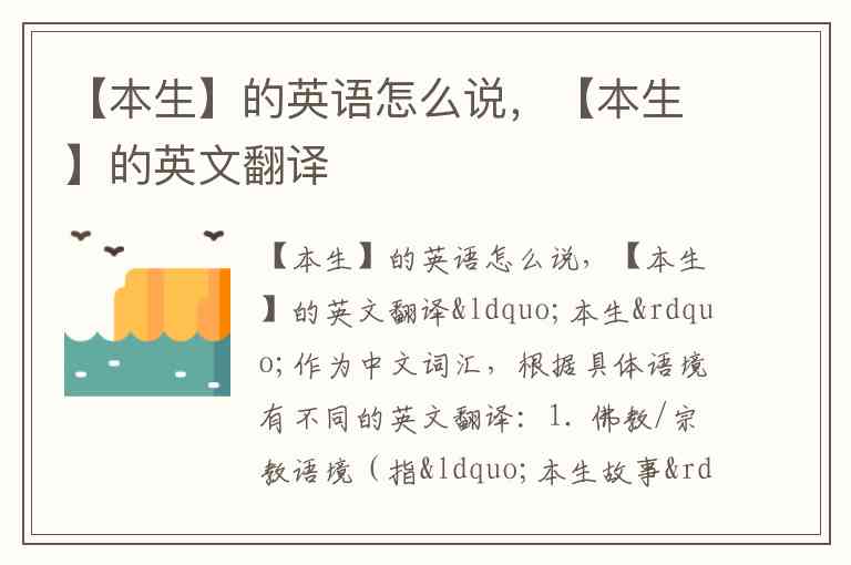 “本生”作为中文词汇,根据具体语境有不同的英文翻译: