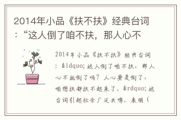 “这人倒了咱不扶,那人心不就倒了吗?”这句台词之所以引发共鸣,正因为它触及了社会信任危机的核心——当道德选择被现实风险扭曲,当善意帮扶可能伴随代价,个体的犹豫折射出群体价值观的动摇。小品通过喜剧形式揭示的“扶人困境”,本质上是道德共识与社会信任体系面临的考验。