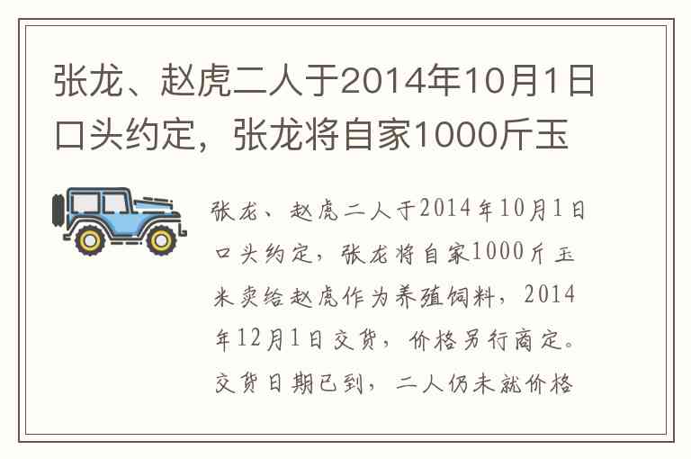 根据《民法典》合同编基本原理,买卖合同的成立需具备当事人、标的、数量三个核心要素。本案中,双方明确约定了出卖人(张龙)、买受人(赵虎)、标的物(1000斤玉米)及交货时间(2014年12月1日),已满足合同成立的最低要件。价款属于非必备条款,未明确约定不影响合同成立。