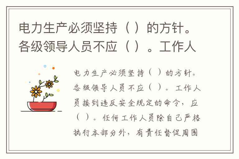 电力生产必须坚持“安全第一、预防为主”的方针。这一方针贯穿于电力行业的核心规范,如《电力生产安全工作规定》开篇即明确此原则,强调通过制度建设和责任落实防范事故风险。国家电力监管委员会发布的部门规章也将其作为电力安全生产的根本遵循,要求企业建立安全生产保证体系与监督体系,实现技术与管理双重创新。