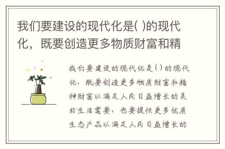 我们要建设的现代化是( )的现代化,既要创造更多物质财富和精神财富以满足人民日益增长的美好生活需要,也要提供更多优质生态产品以满足人民日益增长的。 A. 人与自然和谐发展;美好生态环境需要 B. 人与自然和谐共生;和谐生态环境需要 C. 人与自然和谐共生;优美生态环境需要