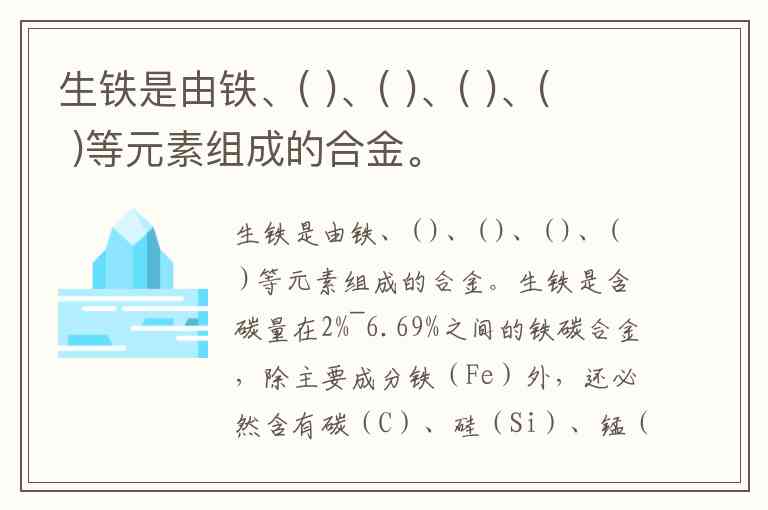 生铁是由铁、( )、( )、( )、( )等元素组成的合金。