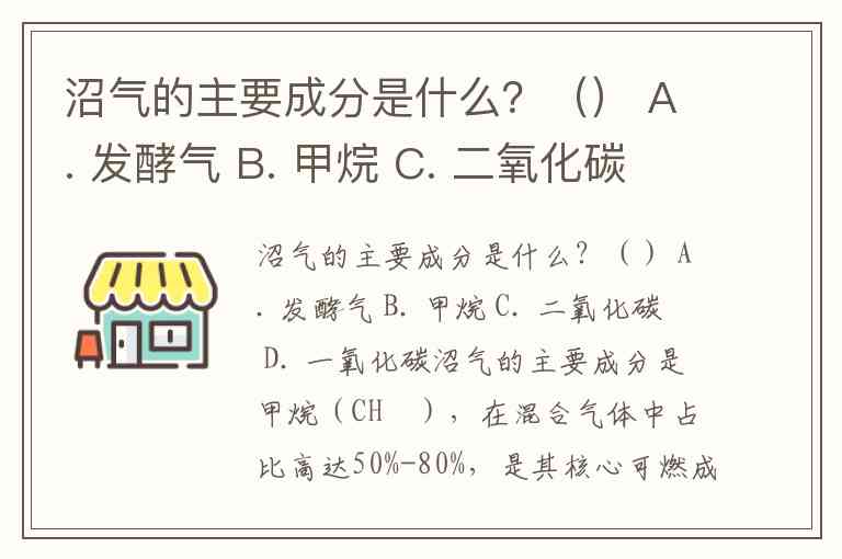 值得注意的是,文档3曾错误将答案标记为“D”,但结合其正文“沼气主要成分是甲烷”的表述,可判断为排版失误,实际应指向甲烷选项。这种成分特性也解释了沼气为何能作为燃料使用——甲烷燃烧时释放的能量占其总热值的90%以上。