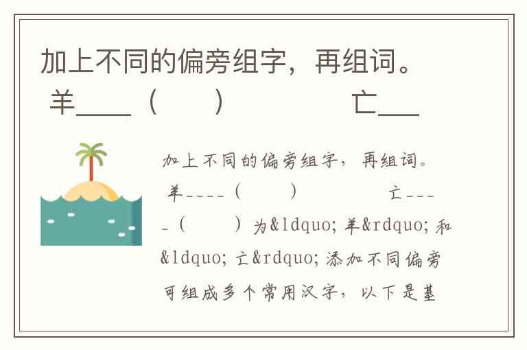 为“羊”和“亡”添加不同偏旁可组成多个常用汉字,以下是基础且高频的组词示例: