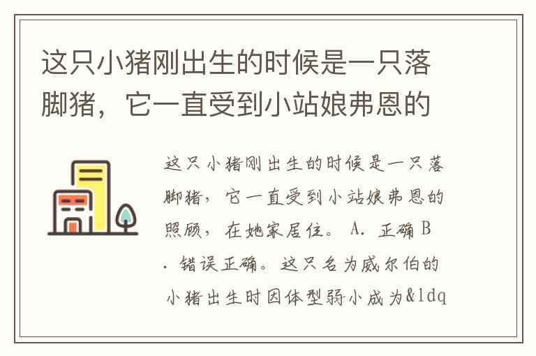 这只小猪刚出生的时候是一只落脚猪,它一直受到小站娘弗恩的照顾,在她家居住。 A. 正确 B. 错误