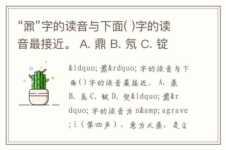 “鼐”字的读音与下面( )字的读音最接近。 A. 鼎 B. 氖 C. 锭 D. 奘