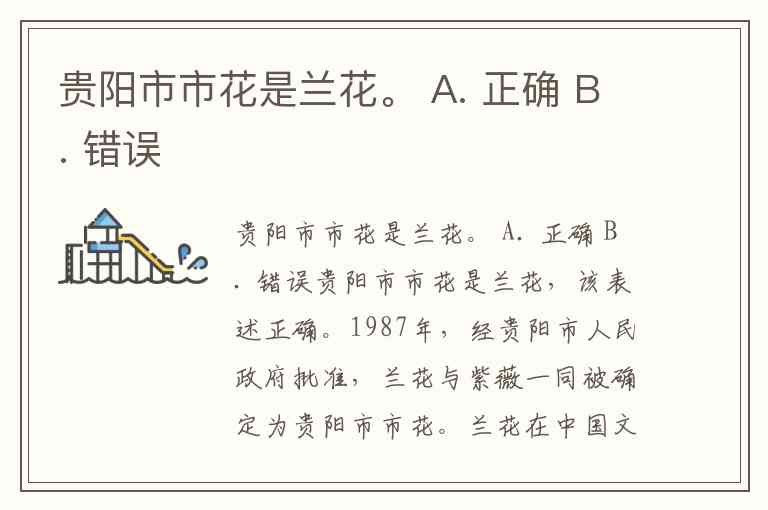 贵阳市市花是兰花。 A. 正确 B. 错误
