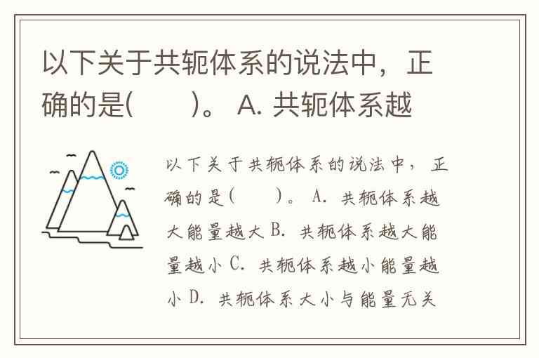 以下关于共轭体系的说法中,正确的是( )。 A. 共轭体系越大能量越大 B. 共轭体系越大能量越小 C. 共轭体系越小能量越小 D. 共轭体系大小与能量无关