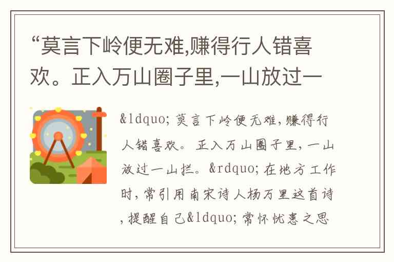 “正入万山圈子里,一山放过一山拦”以山区行路为喻,生动揭示了矛盾普遍性的哲学原理——矛盾贯穿事物发展始终,旧问题解决后新问题必然涌现,正如人生“每一个阶段都有新的山峦等待翻越”。诗人用“放”与“拦”的动态描写,赋予山峦以生命意志,形象展现矛盾“存在于事物发展的一切过程中,又贯串于一切过程的始终”这一特性。