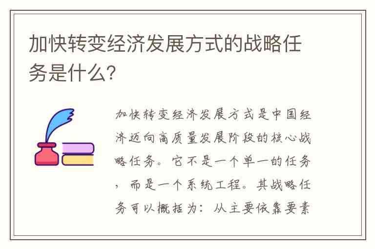 其战略任务可以概括为:从主要依靠要素投入(如资本、劳动力、资源)的粗放型增长,转变为主要依靠创新驱动、结构优化、效率提升的集约型增长。