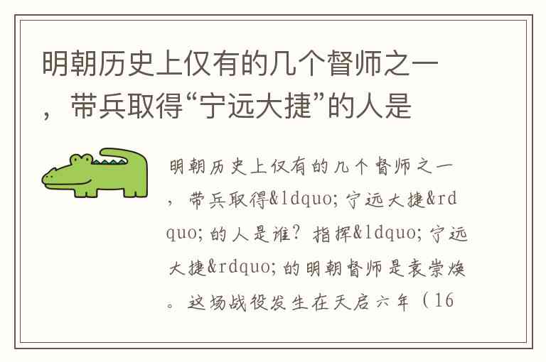 指挥“宁远大捷”的明朝督师是袁崇焕。这场战役发生在天启六年(1626年)正月,是明朝与后金(清)交战以来的首次重大胜利,彻底打破了后金“战无不胜”的神话。
