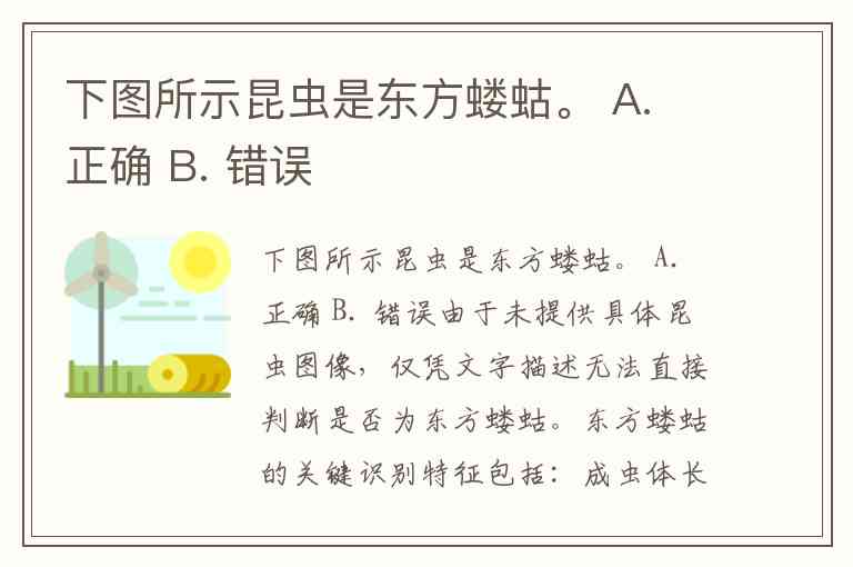 下图所示昆虫是东方蝼蛄。 A. 正确 B. 错误