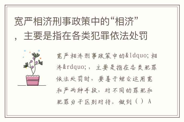 宽严相济刑事政策中的“相济”,主要是指在各类犯罪依法处罚时,要善于综合运用宽和严两种手段,对不同的罪犯和犯罪分子区别对待。做到() A. 严中有宽 B. 宽以济严 C. 宽中有严 D. 严以济宽