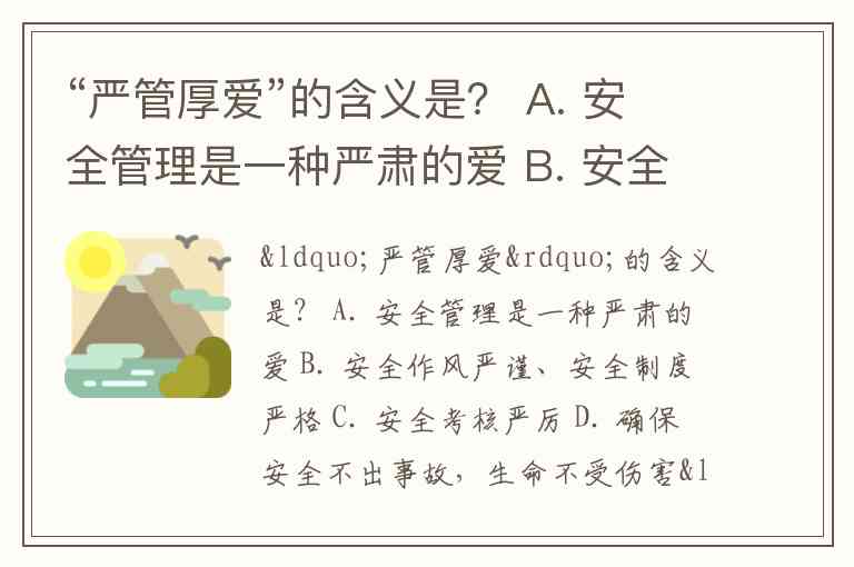 “严管厚爱”的含义是? A. 安全管理是一种严肃的爱 B. 安全作风严谨、安全制度严格 C. 安全考核严厉 D. 确保安全不出事故,生命不受伤害