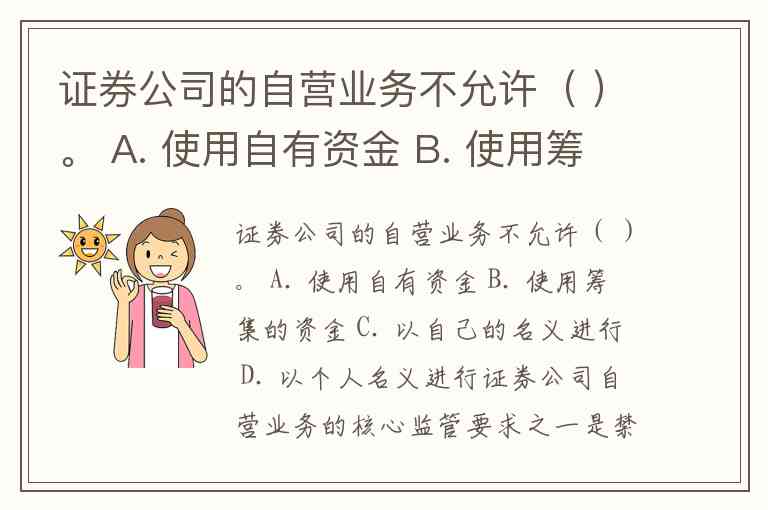 证券公司的自营业务不允许( )。 A. 使用自有资金 B. 使用筹集的资金 C. 以自己的名义进行 D. 以个人名义进行