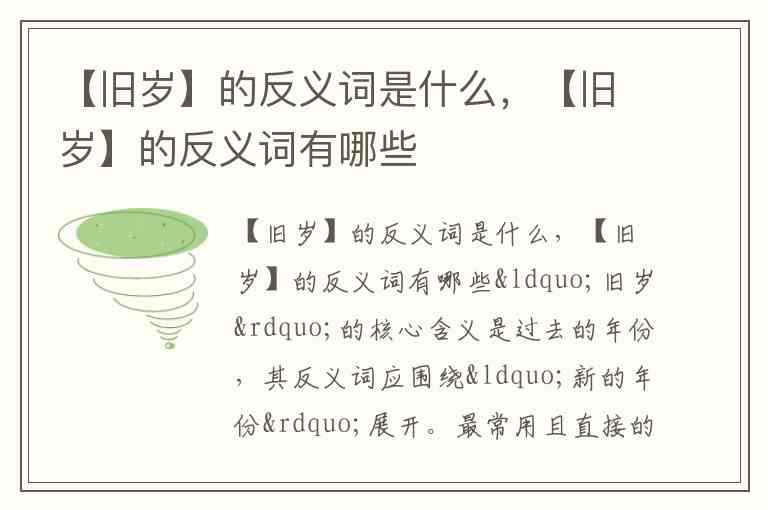 “旧岁”的核心含义是过去的年份,其反义词应围绕“新的年份”展开。最常用且直接的反义词是**“新年”**,此外还有“今岁”“新岁”“来年”等表达,具体使用需结合语境区分细微差别。