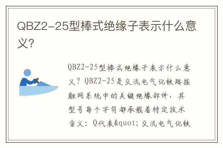 QBZ2-25是交流电气化铁路接触网系统中的关键绝缘部件,其型号每个字符都承载着特定技术含义:Q代表"交流电气化铁路用棒式瓷绝缘子",B表示用于"区间、站场腕臂支持"场景,Z标识"双重绝缘"结构(单绝缘产品不标注此字母),数字2对应1200mm的爬电距离(耐污等级),破折号后的25则指25kV额定电压。这种组合设计使其成为区间和站场腕臂支撑的耐污型双重绝缘解决方案。