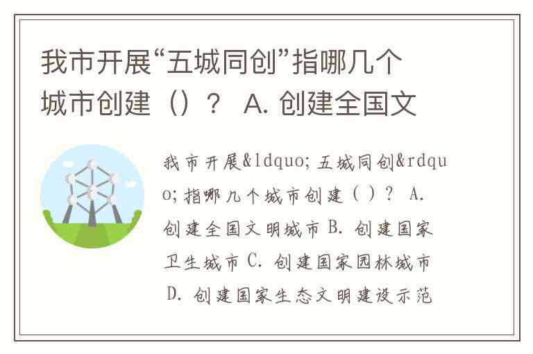 答案:A、B、C、D、E(对应孝感市的五项创建内容)。你所在的城市是否也在推进类似创建?不同城市的“五城同创”清单往往蕴含着当地发展的核心目标,你认为生态与文明类创建对城市竞争力提升有哪些具体影响?