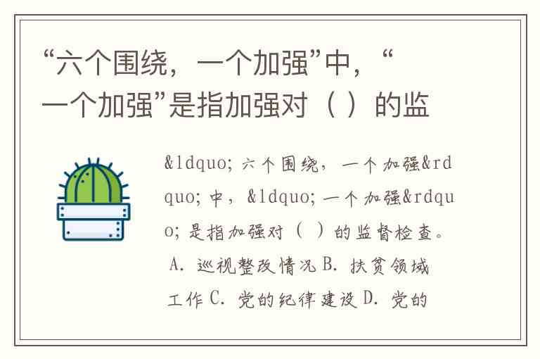 “六个围绕,一个加强”中,“一个加强”是指加强对( )的监督检查。 A. 巡视整改情况 B. 扶贫领域工作 C. 党的纪律建设 D. 党的思想建设