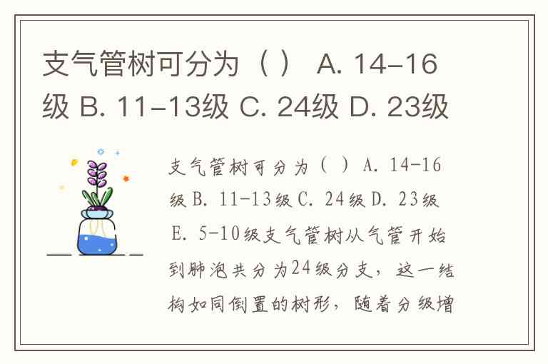 支气管树可分为( ) A. 14-16级 B. 11-13级 C. 24级 D. 23级 E. 5-10级