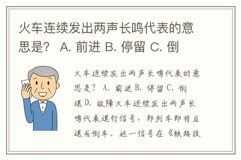 火车连续发出两声长鸣代表的意思是? A. 前进 B. 停留 C. 倒退 D. 故障