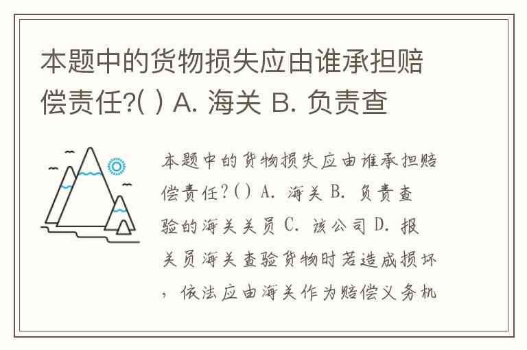 本题中的货物损失应由谁承担赔偿责任?( ) A. 海关 B. 负责查验的海关关员 C. 该公司 D. 报关员