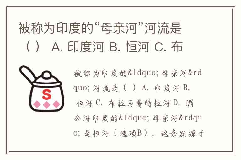值得注意的是,选项A的印度河虽名称含“印度”,却主要流经巴基斯坦;湄公河(D)位于东南亚,均与题意无关。恒河作为“母亲河”的双重属性——地理命脉与文化图腾,使其成为印度最具象征意义的河流符号。如果失去恒河,印度失去的将不仅是一条水道,更是一个文明的精神根基。