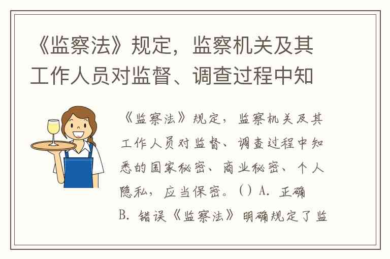 《监察法》规定,监察机关及其工作人员对监督、调查过程中知悉的国家秘密、商业秘密、个人隐私,应当保密。( ) A. 正确 B. 错误