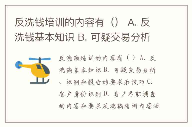 反洗钱培训的内容有() A. 反洗钱基本知识 B. 可疑交易分析、识别和报告的要求和技巧 C. 客户身份识别 D. 客户尽职调查的内容和要求