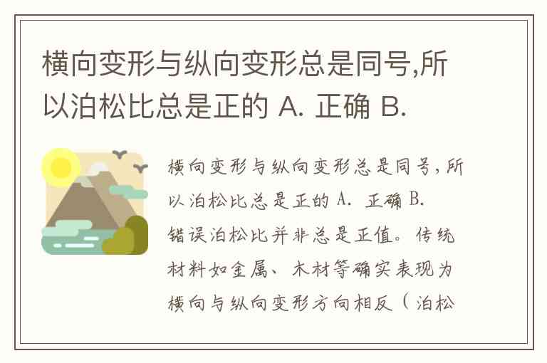 因此,“横向与纵向变形总是同号”的结论仅适用于常规材料,负泊松比材料的存在直接否定了这一绝对化表述。答案为B. 错误。