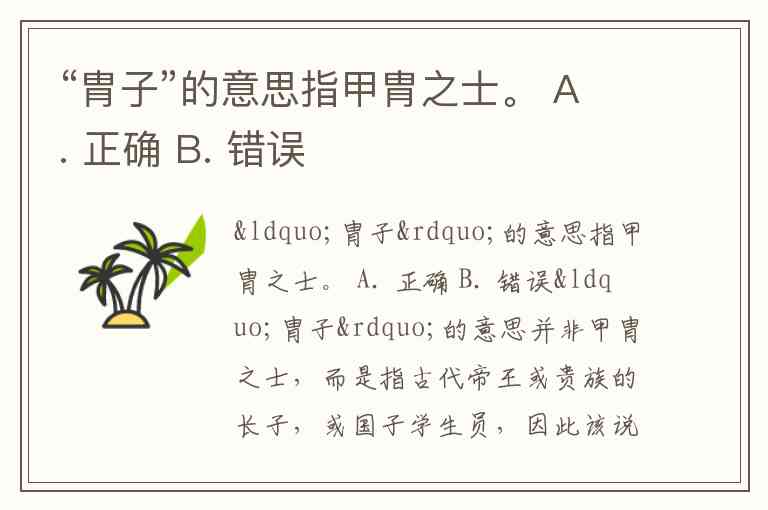 “胄子”的意思指甲胄之士。 A. 正确 B. 错误