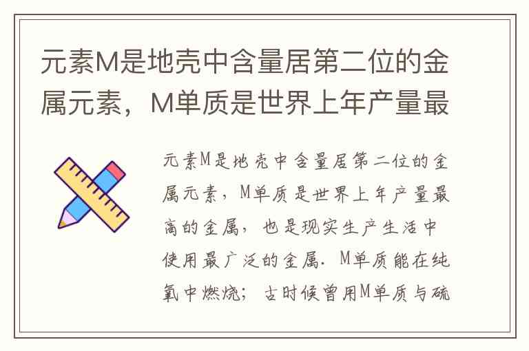 元素M是地壳中含量居第二位的金属元素,M单质是世界上年产量最高的金属,也是现实生产生活中使用最广泛的金属.M单质能在纯氧中燃烧;古时候曾用M单质与硫酸铜溶液反应制取铜;生活中可用稀盐酸除去M单质表面因锈蚀而生成的氧化物;M的碳酸盐(MCO 3 )在一定条件下分解为M的低价氧化物和另一种气态氧化物.推断M元素,按要求写出上面叙述中涉及到的化学方程式. (1)化合反应______; (2)分解反应______; (3)置换反应______; (4)复分解反应______.