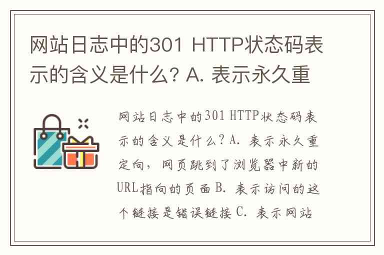网站日志中的301 HTTP状态码表示的含义是什么? A. 表示永久重定向,网页跳到了浏览器中新的URL指向的页面 B. 表示访问的这个链接是错误链接 C. 表示网站内部程序或服务器有错 D. 表示蜘蛛爬取正常,服务器成功返回网页