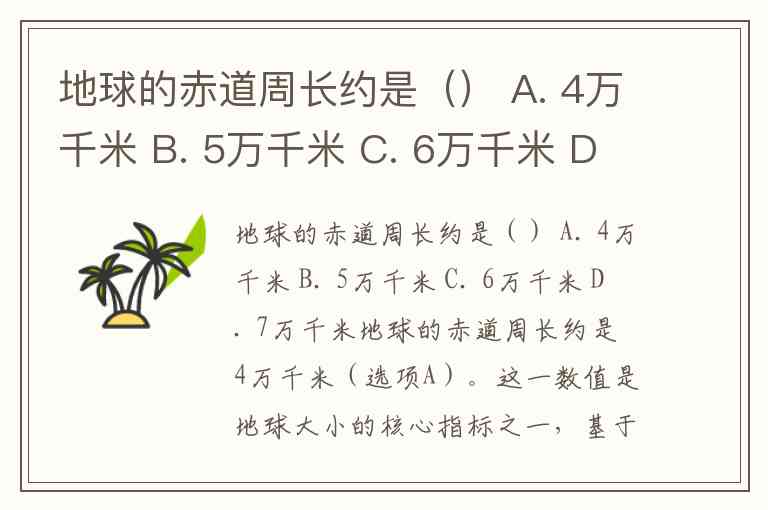 地球的赤道周长约是 4万千米(选项A)。这一数值是地球大小的核心指标之一,基于现代测量技术得出的精确值约为40,075千米,在地理教学和常识中通常简化为“4万千米”以便记忆。