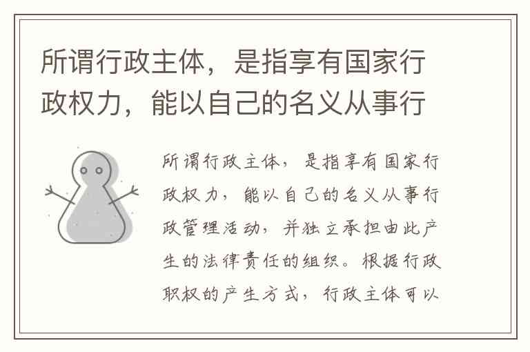 根据行政职权的产生方式,行政主体可分为职权性行政主体和授权性行政主体。这一分类的核心依据是行政权力的来源:前者通过宪法或行政机关组织法“先天”获得职权,后者则通过法律法规“后天”被赋予权力。
