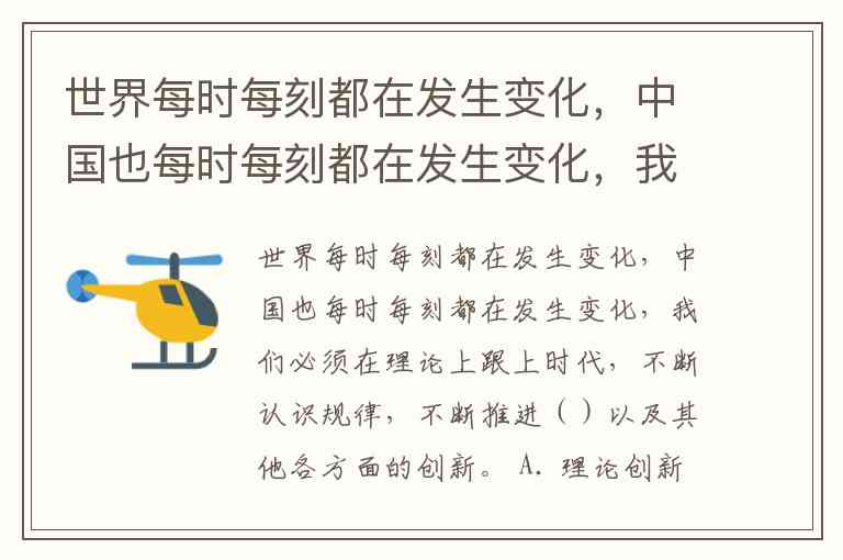 世界每时每刻都在发生变化,中国也每时每刻都在发生变化,我们必须在理论上跟上时代,不断认识规律,不断推进()以及其他各方面的创新。 A. 理论创新 B. 实践创新 C. 制度创新 D. 文化创新