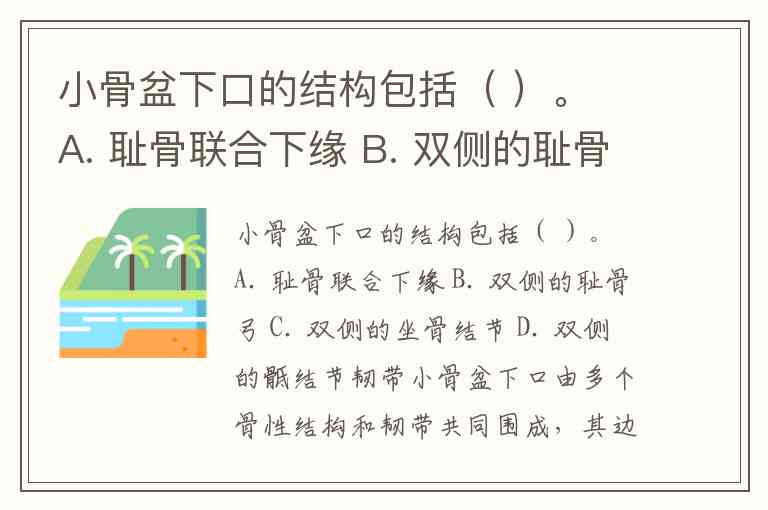小骨盆下口的结构包括( )。 A. 耻骨联合下缘 B. 双侧的耻骨弓 C. 双侧的坐骨结节 D. 双侧的骶结节韧带