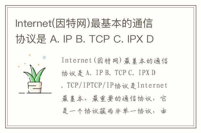 Internet(因特网)最基本的通信协议是 A. IP B. TCP C. IPX D. TCP/IP